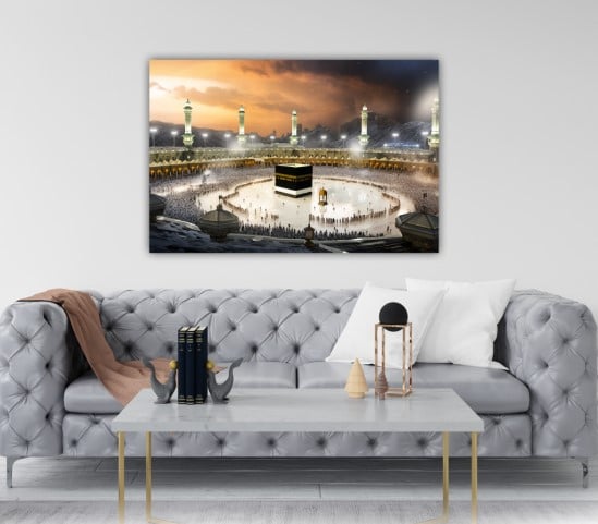 تعرض لوحة الكعبة المشرفة منظرًا متكاملًا للكعبة المشرفة وهي من اللوحات التاريخية التي تعكس التاريخ الديني والحضارة الإسلامية التي تتميز بها المملكة وهي ذات ألوان رائعة ومصنوعة من خامات عالية الجودة.